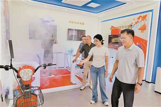 ■消防主题科普馆内,一键模拟电动自行车超时充电起火的场景,加深参观者消防意识。 |