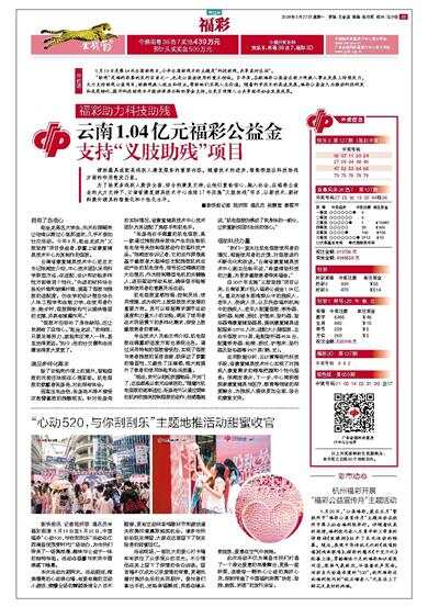 福彩助力科技助残 【开栏语】 5月19日是第34次全国助残日,今年全国助残日的主题是“科技助残,共享美好生活”。 “助残”是福利彩票的发行宗旨之一,也是公益金使用的重点领域。多