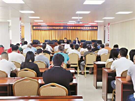 新快报讯 记者朱清海 通讯员林东报道 2024年5月是第四个“民法典宣传月”。为加大民法典宣传普及力度,助力建设法治化营商环境,廉江市农业农村局立足工作实际,精心组织开展“民法典宣传暨优化法治化营商环境”主题宣传进农村活动,把民法典送到群众身边,让法治精神深入人心,为高质量发展营造良好的法治环境。 “法治是最好的营商环境”。为加大农业农村普法宣传工作的力度,廉江市农业农村局高度重视,制定印发《廉江市农业农村局2024年“民法典宣传暨优化法治化营商环境”主题宣传进农村活动方案》,明确细化工作任务目标,确保普法工作落到实处、取得实效。 “把普法宣传活动、科技下乡同文明实践活动相结合,形成上下联动、广泛参与、共同行动的普法工作格局。”据廉江市农业农村局介绍,5月28日、31日,市农业农村局派出志愿者服务小分队,先后深入青平圩镇、石角镇曲江村委会等一线基层,带着宣传资料,宣传民法典、乡村振兴法、农产品质量安全法等法律法规和开展农业生产经营管理技术培训咨询等,累计派发各类普法资料800份,服务群众咨询200人次。 “老牛亦解韶光贵,不待扬鞭自奋蹄。”5月30日,廉江市农业农村局组织举办民法典专题讲座,党组书记、局长曹忠芬主持专题讲座,从民法典主要内容、法律的权威和生命力在于实施、学以致用促发展等三方面作民法典专题辅导学习。同时,由局法律顾问讲授《民法典合同篇·司法实务适用》专项法律知识,不断提高农业执法能力和水平,大力营造良好的法治化营商环境,扎实推进“三农”工作高质量发展。
