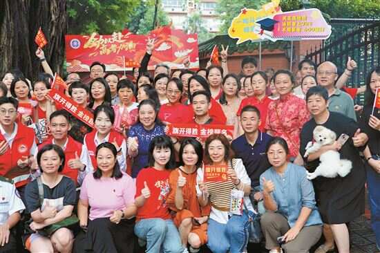 现场直击 化身“文曲星”、手捧向日葵……送考队伍出新招博彩头 多少勤学的日夜即将迎来收获,6月7日,2024年高考正式开考。昨日,各考点出现热闹的送考队伍,为考生送上“花式”祝福——或身着旗袍、火红送考服,为考生“博个好彩头”;或手持向日葵等寓意美好的信物,为考生添上满满仪式感。6月7日全天,新快报记者兵分多路,直击考点“第一线”,捕获暖心故事。 好运接“粽”来 “顶顶这枚粽,今年必高中!”在广州市第六中学(下称“六中”)考点外,高一、二年级学生为学长学姐们准备了别具一格的送考仪式——拉起“必胜”手幅,有节奏地挥动鼓掌拍和加油棒夹道欢迎考生。一名同学支起长长的竹竿,竹竿尾端系起一枚粽子,吸引全场目光。在欢呼声中,考生跳跃顶起粽子,寓意一举高中。 在该考点,记者还偶遇了两位“文曲星”,来自高一高二的他们正给参加高考的学长学姐送来满满的祝福。 “这些都是我们六中经典的送考环节,今年五月学生会就开始着手筹备,为赴考的学长学姐们助威。”高一年级的梁同学分享说,“当喊出今年的口号时,觉得现场气氛很感人,甚至有想哭的冲动。” 一举夺“葵” 在广州市第一一三中学(东方校区)考点,不少家长老师来到现场为考生加油鼓劲,老师们基本人手一朵向日葵。“今天的心情蛮激动,带了三年的孩子,希望这一刻他们都能发挥出最好水平,进入理想大学,这是我们所有老师最真挚的祝福。”该中学高三级长艾泽华表示。她介绍了学校老师们为考生准备的送考仪式,譬如周老师准备了手写祝福卡;有些班级准备了祝福手绳;在每个班里插上了向日葵,祝愿考生“一举夺魁”;考前一天,年级号召了全校所有学弟学妹给高三的同学们喊楼;给每个学生准备了一个红苹果等等。 来广州奥林匹克中学送考的胡女士,不仅穿上旗袍,还给女儿带来一束向日葵,“这是我自己包装的,专门挑了三朵,寓意向阳而生,一举夺魁。”胡女士说,这是她第三次“陪考”,“我有三个孩子,两个哥哥一个妹妹,六年前大哥哥高考,今年轮到最小的了。”她笑说,自己陪考也陪出经验来了,“大哥哥高考时我紧张到不行,现在则比较淡定,这次因为是女儿高考,我穿得隆重一点。陪他们一路考试,感觉我自己也在成长,就是平常心对待”。 “凯旋”进场 “高考必胜 逢考必赢”,广州奥林匹克中学今年在考场外搭建了“凯旋门”,考生走过贴着“成功路 胜利路”六个大字的路面,通过“凯旋门”进入考场。 该校高三行政主任乐老师告诉新快报记者,学校每年都有送考仪式,“‘凯旋门’的创意是从一年前孩子们上高三就开始策划,路上的大字是祝考生‘由成功走向胜利’,主要是希望通过这样一种仪式,激励同学们在考试过程中能够更好地表现。”乐老师说,送考老师三天里也会统一着装,“第一天穿红色,寓意开门红,明天会穿绿色,是一路顺利,第三天是橙色,寓意走向辉煌,收获成功。” 特地请假陪考 在广州市第十六中学,上午7时40分,考点门前开始络绎不绝。不少家长穿戴着寓意好运的红色服装,如写着“金榜题名”的红色T恤,红色旗袍、红色丝巾等;有家长手持鲜花,为即将踏入考场的孩子加油打气;也有家长和孩子肩并肩在校门前合影,记录重要瞬间。师生间击掌鼓劲,亲子间拥抱祝福,考点门前弥漫着满满的仪式感和温情。 为准备这场考试,考生和家长们倍加重视。多位家长告诉记者,他们特意为孩子准备了多份准考证和文具,以备不时之需,确保孩子能够顺利参加考试。有的家长更是成了“陪考员”,或是特意向单位请假,全程守候在考场外;或是在考场周边租下房间,陪孩子度过三天紧张的时光。一位特意请假陪考的家长表示,她在早上8点就将孩子送进考场,自己会一直守在校门外,等待孩子完成第一个科目的考试再接孩子一起去用餐。“希望孩子可以以一颗平常心去面对高考,考取好成绩”。 重温高考气氛 新快报记者在广州十六中考点门前,看见了两位回母校“凑热闹”的大一学生。“我们今天在七点四十分就到学校门口了,刚好今天不用上课,就约着一起回来送考,重新感受一下高考的氛围。”其中一名学生对记者说道。 广州市第一一三中学今年也有不少学长学姐回来给师弟师妹加油打气。艾泽华说:“这些正是我们三年前带过的学生,我觉得我们对学生的爱,学生是能体会到的。其实,在每年不同时间段,以前毕业的孩子们只要有时间,都会回来看看我们。”她谈道,这也是她们在高中三年教育孩子的,要学会感恩,学会去爱。 相关新闻 荔湾区“静”音助考 新快报讯 记者谢源源 通讯员江健报道 今年高考恰逢“龙舟水”,为保障道路通行顺畅,确保广大考生安全出行、静音应考,荔湾区城管执法局强化重点地区安全防范,保障考点周边环境安全、安静、顺畅、顺心,护航考生圆梦。 荔湾城管“微调”环卫作业模式,在考前对考场周边路段进行全面清理和环境整治,适当调整辖区高考考点环卫作业力量和作业时间,考试期间严禁在考场周边区域开展机械化作业,以人工作业为主,尽量减少噪声影响。同时错时开展洒水作业,保障路面巡查质量,组织专职人员对高考考场周边路段的卫生质量进行不定时巡查,做到及时发现、及时整改。加大力量共享单车摆放整治力量,确保考生赶考途中路面通畅无障碍。 高考期间,荔湾城管成立30人的应急处置队伍