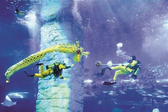 ■广州正佳海洋馆上演海底舞龙大秀。 |