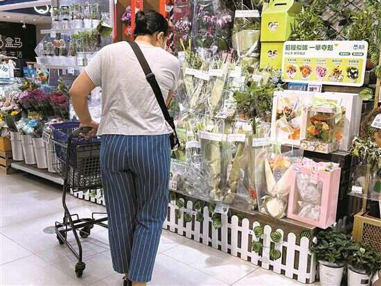 ■艾草出现在超市花束摊位,吸引了市民的目光。 |