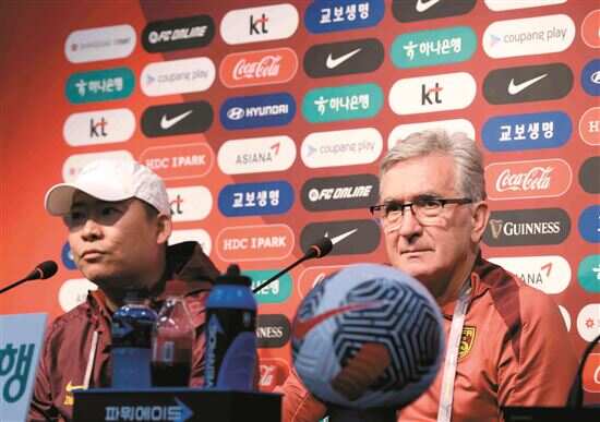■6月10日,中国队主教练伊万科维奇(右)在发布会上。新华社发 |