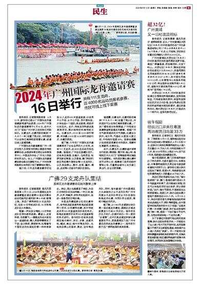 共有111支龙舟,近4000名运动员报名参赛,市民可线上线下观赛 新快报讯 记者黄闻禹报道 6月11日,新快报记者从广州国际龙舟邀请赛新闻通气会获悉,2024年广州国际龙舟邀请赛将于6月1