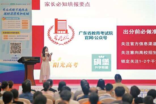 广东新快报社与卓越教育联合主办,吸引近百所高校入场、近万考生家长参与 “人太多了,高校也好多,幸亏来得早……”6月15日,由羊城晚报报业集团支持,广东新快报社与卓越教育联合主办的“阳光高考 赢向未来——全国高校广东招生2024高考志愿填报现场公益咨询会”广州专场在广州越秀国际会议中心举行。包括中山大学、华南理工大学、中央民族大学等近百所省内外知名高校集体亮相,招生负责人、志愿指导专家为近万名家长和学生带来了最新的招生资讯和填报指引。新快报App客户端进行全程直播,线上线下人气火爆。 本次活动得到了广东太古可口可乐有限公司以及广州爱尔眼科医院有限公司、广州普瑞眼科医院有限公司的大力支持。 近百所高校入场,招生咨询火爆 15日下午1时30分,广州越秀国际会议中心人潮涌动。中山大学、华南理工大学等近百所高校在会场内设置咨询展位,招生老师耐心地向前来询问的家长、考生解答报考困惑和专业问题。不少高校在展位前竖起高高的立牌,醒目地标明招生计划和专业优势。 新快报记者看到,很多家长和学生早早就来到咨询会场门前等候,入场后争相领取高校展位派发的招生手册,各大高校展位都有考生在咨询,不少家长与招生老师深入沟通后,当即确定了报考目标。 开场不到30分钟,不少高校展位前的招生手册已被“一抢而空”。“今天带来的材料都发完了,可以扫码查看电子版。”华南师范大学展位前的招生手册很快派发一空,只能分享电子版招生手册。 “不少家长会咨询专业和分数线相关的问题。”广州中医药大学咨询展位前被围得水泄不通,招生负责人袁老师告诉新快报记者,今年学校招生进行了一些变动,因此在咨询现场特别提醒家长“医疗卫生行业”“医学技术”就业方向相关的专业,以前是文理皆招,今年只招收选考“物理化学”类的考生。 “2024广东双高协同育人阳光联盟”成立 当天活动还举行了“2024广东双高协同育人阳光联盟”启动仪式,广东新快报社编委、广东新快报传媒有限公司总经理林波,中山大学教务部招生办招生主管张洁,华南理工大学电子与信息学院副院长余翔宇,华南农业大学广州招生组组长周艳华,中国传媒大学广东招生组老师杜雯,广州市第六十五中学课程教学处主任卢卫,广州市第五中学教导处主任宋细平,广州市真光中学教务处主任区嘉晋,卓越教育升学项目负责人邝明健等共同见证。 据悉,联盟作为广东省高校高中协同育人资源平台,将努力实现高校高中之间多方资源的共享共建,为更多广东学子提供专业、权威的学业发展规划及志愿指导服务。张洁认为,在培养人才方面,高中和高校是非常值得深度合作的,“中山大学将通过建设优质生源基地、推行双高的一些衔接课程以及推进培养高中师资的国优计划等措施来促进双高共同育人。”宋细平也表示,联盟的成立为考生、家长提供了一个透明、专业、个性化的平台,提供了更多的信息和指导。“学校与华工和中大在资源共享、教师培训和学生培养等方面进行了合作,目前已取得了一些成果”。 主办方代表林波在致辞中表示,本次公益咨询会是落实招考服务部门主体责任和主流媒体社会责任的一次活动,新快报将秉承“服务考生、服务教育、服务社会”的宗旨,进一步服务高考招生,助力考生和高校双方实现各自的目标。“我们期待与更多的高校、教育机构以及社会各界建立紧密的合作关系,共同开创广东省高等教育高质量发展的新篇章。”林波表示。 公益讲座“支招”志愿填报和学科备考 当天活动还邀请了多位志愿填报专家到场提供指导。 职业生涯规划师 “阳光高考”首批专家智库成员杨锐鑫在 《未知分数与排位 高考志愿填报指导及应对方法》的分享中,从志愿填报看哪些书、看哪些数据、用哪个系统,院校专业组有哪些秘密等方面介绍志愿填报的准备工作。他强调,考生不仅要关注招生录取分数线、排位,还要关注院校招生计划数和预留计划数,参考2022年和2023年近两年的录取数据以及招生政策变化,“近两年分批次分科类计划数和投档情况,包括投档率等,都是大家需要参考的数据”。 卓越志愿填报特级讲师尹雪儿分享了《出分前必做志愿填报准备》,她建议考生填报前要密切关注省教育考试院发布的相关信息,要留意各院校今年的招生政策变化等。她建议,志愿填报可以分三步走:首先是“定专业”,根据性格及兴趣,选科组合、优势科目以及家庭情况来选择专业;第二步是“选院校专业组”,应了解院校层次及地理位置,优势专业情况以及录取批次及位次等,再作决定;第三步是填志愿,要了解专业组最低排位及录取几率,可综合院校层次及专业实力以及个人喜好等其他因素来考虑。 声音 考生和家长点赞: 咨询会“对我们帮助很大” 咨询会不仅有省内一线名校,还有中央民族大学、中国传媒大学等省外双一流高校,以及广州美术学院等艺术类院校以及“2+2”等国际本科项目,多层次、多类型的参会院校为学生提供了丰富的选择。 现场,不少家长和学生纷纷点赞咨询会。一位在广东外语外贸大学展位前寻找信息的学生告诉记者,自己对外语专业很感兴趣。她在此次咨询会上就确定了报考目标,“之前不清楚小语种和外语的就业前景和专业要求,多亏了这次咨询会,让我了解许多高校的外语专业,还找