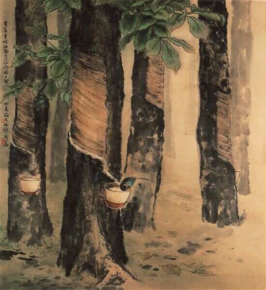 ■膠林晨曦 1980年代李国华 纸本设色 |