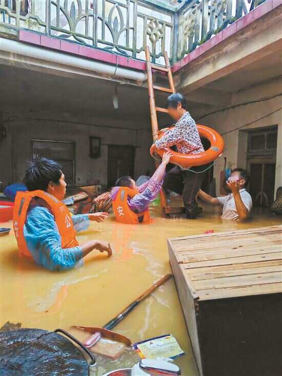 ■救援警力在梅州市平远县大柘镇坝头村转移受困群众。 通讯员供图 |