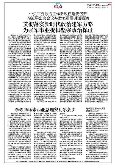 中央军委政治工作会议在延安召开 习近平出席会议并发表重要讲话强调 据新华社电 中央军委政治工作会议17日至19日在陕西延安召开。中共中央总书记、国家主席、中央军委主席习近平出席会议并