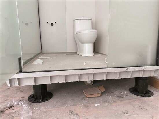 ■卫生间做了抬高处理,地板下安有下水管道。 |
