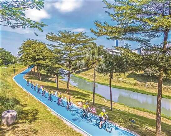 ■黄埔区南岗河边的骑行队。李颖妍摄影 |