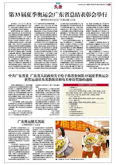 黄坤明王伟中会见广东奥运健儿代表 新快报讯 8月21日下午,第33届夏季奥运会广东省总结表彰会在广州举行。会前,省委书记黄坤明、省长王伟中会见广东奥运健儿代表并合影留念。 黄坤明代表省委、省人大常委会、省政府、省政协和全省人民,热烈欢迎我省出征巴黎奥运会的体育健儿载誉凯旋,向全体参赛运动员、教练员、工作人员共同努力取得的优异成绩表示衷心祝贺,并向全省广大体育工作者和关心支持广东体育事业发展的社会各界人士表示诚挚感谢。他说,习近平总书记在接见第33届奥运会中国体育代表团时发表重要讲话,深刻指出中国体育代表团的优异成绩,充分彰显了新时代中国力量,生动诠释了新时代中国精神,勉励广大体育健儿戒骄戒躁、再接再厉,为建设体育强国再立新功,进一步指明了推进体育事业改革发展、加快体育强国建设的前进方向。在巴黎奥运这个国际竞技场上,广东体育健儿始终心系祖国、牢记嘱托,以昂扬的斗志、顽强的作风、高超的技能,同世界各国各地区运动员公平竞争、友好交流,努力为祖国和家乡增光添彩,赛出了水平、赛出了风格,向世界展示了中国青年、广东青年的时代风采和精神风貌。广大教练员、工作人员全力以赴、用心用情做好参赛保障服务,全省体育系统和各地市精心做好备战和协调工作,以无私奉献的精神、扎实有力的举措为体育健儿发挥最佳竞技水平提供坚实支撑,合力创造了我省运动员参加奥运会最好成绩,实现了运动成绩和精神文明双丰收。全省人民为你们感到骄傲和自豪。 黄坤明强调,新的起点上,大家要学习好贯彻好习近平总书记重要讲话精神,大力弘扬中华体育精神和奥林匹克精神,认真总结经验,坚持科学训练,加强团队协作,努力提升竞技水平,高质量做好第十五届全运会和洛杉矶奥运会、名古屋亚运会等的备战参赛工作,保持良好状态,团结一心、奋力拼搏,力争再创佳绩、实现超越。要发挥好榜样作用,主动投身到体育强省建设的实践中,示范带动全民健身蓬勃开展,进一步激发全省干部群众干事创业的热情与干劲,以新担当新作为奋力推动广东在推进中国式现代化建设中走在前列。全省各地各有关部门要深入贯彻落实总书记重要讲话精神,坚持各项运动全面均衡发展,全力做好运动员、教练员保障工作,从娃娃抓起搞好青少年体育和学校体育,持之以恒抓好梯队建设,进一步提升竞技体育综合实力。要大力发展以人民为中心的体育事业,推动全民健身和全民健康深度融合,广泛开展形式多样、丰富多彩、可感可及的群众性体育活动,不断增强人民体质,有力推动体育强省建设迈上新水平、取得新成效。 王伟中出席总结表彰会并讲话。他表示,在巴黎奥运会上,广东体育健儿不畏强手、不负重托,以昂扬的斗志、顽强的作风、高超的技能向世界展示了广东运动员朝气蓬勃、奋力拼搏、勇攀高峰的时代风采,为国家争了光、为家乡添了彩。我们要全面贯彻落实党的二十大和二十届二中、三中全会精神,认真学习贯彻习近平总书记在接见第33届奥运会中国体育代表团时的重要讲话精神,按照省委“1310”具体部署,大力发展以人民为中心的体育事业,推动全民健身和全民健康深度融合,推进广东体育改革创新,进一步提升竞技体育综合实力,全力实现十五运会办赛、参赛“两个精彩”,加快建设体育强省,打造体育强国示范地。希望广东体育健儿进一步弘扬中华体育精神和奥林匹克精神,不断攀登竞技体育新的高峰,努力在国内外赛场取得更好成绩。全省各行各业、各条战线都要向广东奥运健儿学习,团结奋斗、攻坚克难,撸起袖子加油干,只争朝夕抓落实,努力在本职岗位上不断追求卓越、超越自我,汇聚起推动经济社会高质量发展的强大力量,奋力在推进中国式现代化建设中走在前列。 在表彰会上,省委常委、副省长,省委统战部部长王曦宣读了《中共广东省委 广东省人民政府关于给予我省参加第33届夏季奥运会获奖运动员及其教练员和有关单位奖励的通报》。 据悉,在本届奥运会上,广东共有38名运动员参加了16个大项19个分项42个小项的比赛,以8枚金牌、4枚银牌、4枚铜牌、24项次前八名的优异成绩创造我省奥运会历史最好参赛成绩,金牌数、奖牌数均居全国各省区市第一位。 省委常委、宣传部部长陈建文,省人大常委会副主任叶贞琴,省政协副主席许瑞生参加有关活动。 (徐林 骆骁骅 李凤祥 岳宗 符信)