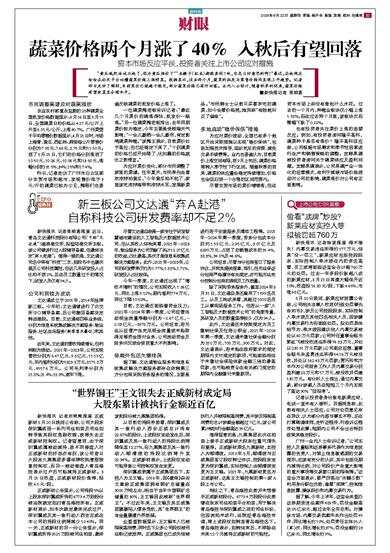 蔬菜价格两个月涨了40% 入秋后有望回落