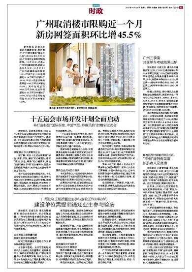 广州取消楼市限购近一个月 新房网签面积环比增45.5%