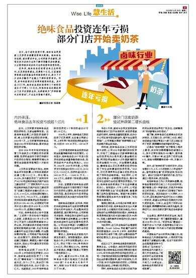 绝味食品投资连年亏损 部分门店开始卖奶茶