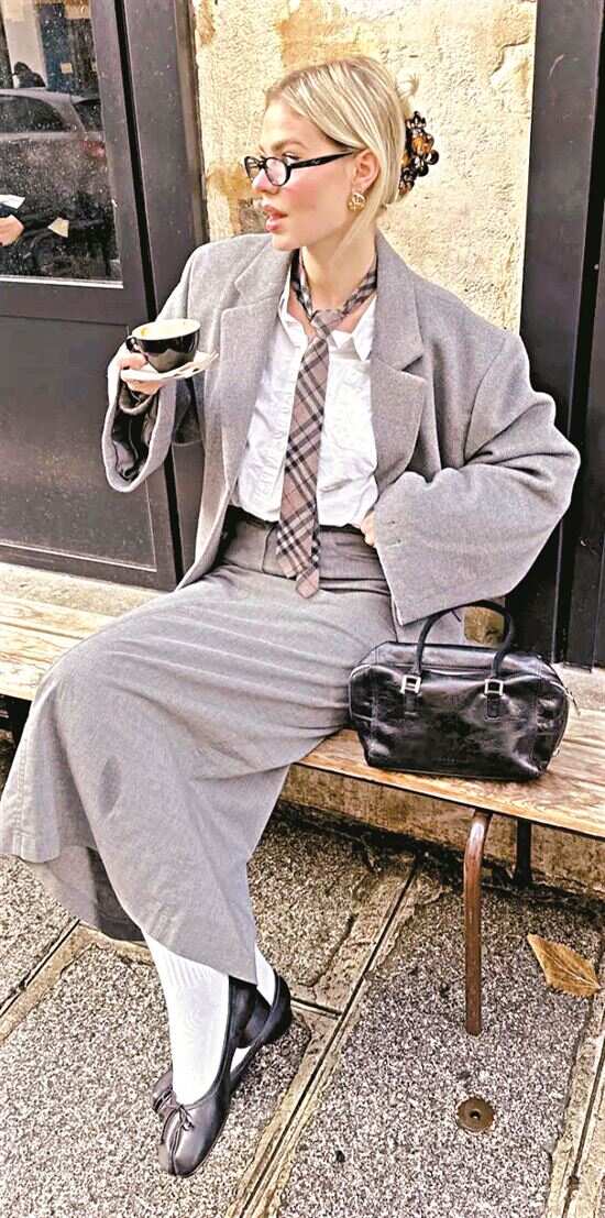 加袜子的穿法能让单鞋成功完成季节过渡,让穿搭更有层次。 |
