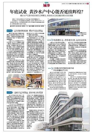 黄沙水产交易市场目前仍正常营业,有些档主已决定搬迁部分仍在观望 拥有三十年历史的黄沙水产交易市场,年底将要搬新址了。 新市场位于广州市荔湾区东洛围码头,命名为“黄沙水产中心”,计划将