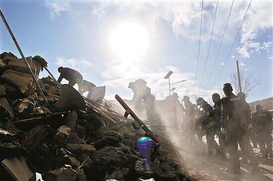 ■1月7日,救援人员在定日县长所乡古荣村进行搜救。新华社发 |
