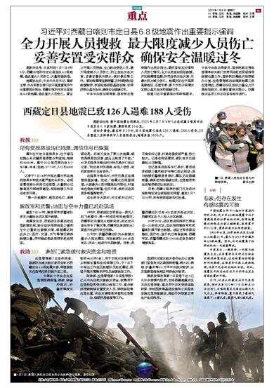 习近平对西藏日喀则市定日县6.8级地震作出重要指示强调 全力开展人员搜救 最大限度减少人员伤亡 妥善安置受灾群众 确保安全温暖过冬