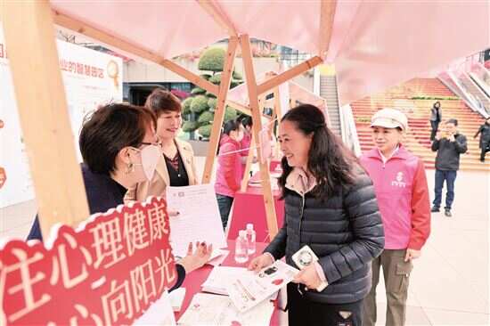 ■黄埔区妇联相关负责人了解心理健康摊位惠民情况。 |