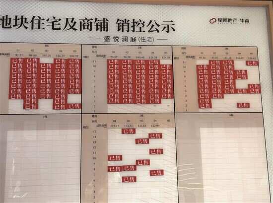 ■位于广州市番禺区的星河·盛世锦城展示的销控表,存在线上线下信息不一致的情况。 |