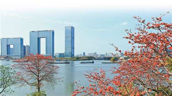 ■近日,广州气温上升明显,最高接近30℃,在番禺区上漖村的旧船厂,几棵木棉绽放如火。据天气预报,明天起雷雨趋活跃,周末受冷空气影响,广州将有强降雨。