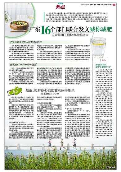 近日,国家卫生健康委员会主任雷海潮在民生主题记者会上表示实施“体重管理年”3年行动,普及健康生活方式,加强慢性病防治。一时之间,体重管理话题再次引发热议。 新快报记者从广东省卫生健康委官网处获悉,广东省卫生健康委等16部门联合制定了《广东省“体重管理年”活动实施方案》(以下简称《方案》),从家庭体重管理实用工具、中医药对体重管理的支持等多个方面和维度给予了详细指引和建议。 ■采写:新快报记者 李斯璐 潘芝珍 广东约四成成年人超重或者肥胖 去年,国家卫生健康委员会等16个部门启动了“体重管理年”活动,进一步提升全民健康管理意识和技能,普及健康生活方式,改善部分人群体重异常状况。 据了解,体重水平与人体健康状况密切相关,体重异常特别是超重和肥胖是导致心脑血管疾病、糖尿病和部分癌症等慢性病的重要危险因素。《方案》中指出,根据调查显示,广东约四成成年人超重或者肥胖,超重肥胖形势不容乐观,亟需加强干预,予以改善。 对此,《方案》提出目标,力争通过三年左右时间,建立完善有助于促进体重管理的支持性环境,增强专业技术支撑能力和服务水平,提升居民体重管理意识和相关技能,普及健康生活方式,营造全民参与、人人受益的体重管理良好局面,改善部分人群体重异常状况。 到2025年底、2026年底,广东二级及以上综合医疗机构提供体重管理及肥胖症诊疗服务的覆盖率分别不低于50%、80%。到2027年底,居民体重管理知识知晓率较基线水平上升10%,经常参加体育锻炼人数比例达到41%,每万人营养指导员不低于0.6名。 建议推广“一秤一尺一日历” 对于个人来说,有哪些实用的工具可以监督自己管理体重呢? 《方案》给出了实用指引,比如,建议推广“一秤一尺一日历”(体重秤、腰围尺、体重管理日历),鼓励家庭、医疗卫生机构、学校、机关企事业单位、酒店宾馆、运动场所等配置体重秤,有条件的配置体脂成分分析仪。 《方案》建议,每个家庭以家庭主厨为对象,推广健康烹饪模式和营养合理配餐,重点加强健康烹饪方法、“减盐、减油、减糖”措施的指导。支持并推动家庭健康指导员队伍建设,依托家庭健康指导员倡导家庭以体重管理为重点制定健康管理规划,指导家庭成员定期测量体重,加强相互提示和监督,积极参与全民健身运动,降低聚集型家庭肥胖风险。 《方案》还提出可结合健康城市、慢性病综合防控示范区等建设,扩大健康小屋社区覆盖范围,打造健康主题公园、健康步道、健身器材等支持环境。加强健康单位建设,鼓励单位为职工健身提供基础设施和条件。大力推进营养健康食堂、营养健康餐厅建设,推广健康烹饪模式和营养合理配餐。此外,鼓励开发具备连续动态采集分析体重变化并提供体重管理建议的移动应用程序(APP)和小程序,促进体重管理日常化、便利化、规范化。 焦点 超重、肥胖跟心脑血管疾病等相关 体重管理并非小事 近日,网友交流最多的一句话是:“国家让我减肥了。”“体重管理”成为国家层面关注的民生问题,对此,网友惊讶,专家点赞。 记者采访多名医疗专家,他们认为体重管理并非小事:“超重或肥胖跟心脑血管疾病如高血压、心脏病及糖尿病等慢性代谢性疾病相关,甚至跟骨关节病、肿瘤的发生都有密切联系。一个合理的体重,对我们身体健康的益处是全方位的。同时,这也是我国以‘预防’为主健康战略思想的注脚。” 为何“体重管理”关乎民生? “肥胖不仅仅是身材走样,它实则是一种慢性病。”南方医科大学珠江医院内分泌代谢科主任陈宏指出,肥胖病堪称代谢紊乱的集大成者。 肥胖也是诸多疾病的根源,糖尿病、高血压、高脂血症乃至癌症,都与肥胖有着千丝万缕的联系。“肥胖是所有慢性病的前期表现,往往比糖尿病等疾病更早被察觉。所以,控制肥胖,管理体重,恰好能体现医防融合关口的前移。”陈宏说。 为何减重之路困难重重? “爱吃,控制不了嘴巴”“我知道减肥的道理,但是就是忍不住要吃”……“管不住嘴”是减肥人士相同的困境。如何破局,达到减重的目标呢? “减肥的六字诀很多人都知道:管住嘴,迈开腿,”但陈宏表示,肥胖并非单纯“管不住嘴”的热量失衡,还有其他原因,“比如工作压力之下影响运动意愿,加上便利的外卖让人们更容易获取美食,还有食品里添加了一些容易发胖和干扰内分泌代谢的添加剂等。”因此,体重增长的背后是人和社会的复杂博弈。 生活方式干预成为目前改善肥胖的重要举措。陈宏强调,尤其不能忽视自身行为方式的重塑。首先,不能一味地认为吃饭就是好事。在临床上,医生常常为肥胖患者制订饮食和运动方案。实际上,只要患者有减肥意愿,并按照医生的处方执行,比如合理控制饮食、适度运动,短期内或许能取得一定效果。“但仅依靠短暂的生活方式干预,2-3年后体重反弹率通常在50%-70%。这表明减肥是一个持续的过程,贵在坚持。”陈宏如是说。 “一秤一尺一日历”怎样用? 《方案》中提到的“一秤一尺一日历”,具体是怎样做? 暨南大学附属第一医院副院长、胃肠外科肥胖代谢外科主任医师杨景哥介绍,“一秤一尺一日历”是2024年国家卫健委推行“体重管理年”当中提出的一套工具包。“这套工具包,家家户户都有条件配备,用于日常体重检测,看看BMI指数有没有超标,测量腰围是否逐渐因脂肪