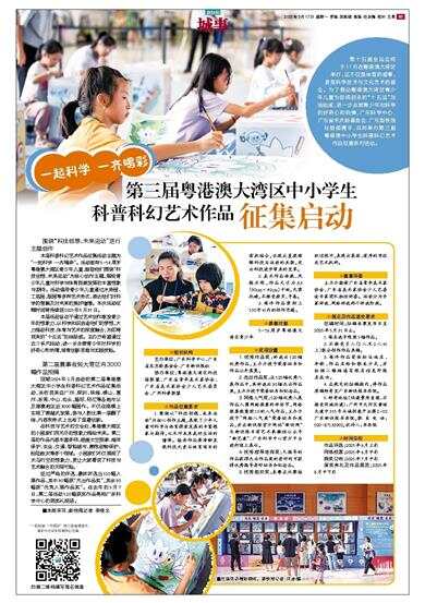 第十五届全运会将于11月在粤港澳大湾区举行,这不仅是体育的盛事,更是科学技术与文化艺术的盛会。为了推动粤港澳大湾区青少年儿童为即将到来的“十五运”加油助威,进一步点燃青少年对科学的好奇心和热情,广东科学中心、广东省宋庆龄基金会、广东新快报社继续携手,共同举办第三届粤港澳中小学生科普科幻艺术作品征集系列活动。 围绕“科技创想、未来运动”进行主题创作 本届科普科幻艺术作品征集活动主题为“一起科学 一齐喝彩”。活动面向5-16周岁粤港澳大湾区青少年儿童,鼓励他们围绕“科技创想、未来运动”为核心创作主题,展现青少年儿童对科学与体育探索发展的丰富想象与期待。活动倡导青少年儿童通过水彩画、工笔画、版画等多种艺术形式,表达他们对科学的理解及对未来的美好憧憬。本次活动征稿时间将持续到2025年5月31日。 本届活动旨在于通过艺术创作激发青少年的想象力,以科学知识启迪他们的梦想,大力推动科技、体育与艺术的深度融合,为即将到来的“十五运”加油助威。主办方希望通过这个系列活动,进一步点燃青少年对科学的好奇心和热情,培育创新思维与实践技能。 第二届赛事收到大湾区内3000幅作品投稿 回顾2024年2月启动的第二届粤港澳大湾区中小学生科普科幻艺术作品征集活动,共收到来自广州、深圳、珠海、佛山、惠州、东莞、中山、汕头、揭阳、阳江等各地市以及港澳地区近3000幅画作。不仅在规模上实现了跨越式发展,参与人数比第一届翻了倍,内容和形式上也有了显著创新。 在科技与艺术的交会处,粤港澳大湾区的小画家们用无尽的想象力描绘未来。第二届的作品内容丰富多样,涵盖太空探索、海洋保护、农业、交通、智能城市、濒危动物保护、抢险救灾等多个领域。小画家们不仅展现了天马行空的想象力,更让大家看到了科技与艺术融合的无限可能。 经过严格的评选,最终评选出120幅入展作品,其中30幅获“杰出作品奖”,其余90幅获“优秀入展作品奖”。在去年的9月7日,第二届活动120幅获奖作品亮相广东科学中心的颁奖礼现场。 ●组织机构 主办单位:广东科学中心、广东省宋庆龄基金会、广东新快报社 协办单位:粤港澳大湾区科技馆联盟、广东省青年美术家协会、 广东省美术家协会少儿艺术委员会、广州科普联盟 ●作品征集要求 1.围绕以“科技创想、未来运动”为核心创作主题,展现了少年儿童对科学与体育探索发展的丰富想象与期待,以及对未来美好生活的憧憬。绘画作品要清晰呈现科技元素与体育项目的有机结合,让观众直观理解科技与运动的关联,突出科技进步带来的变革。 2.美术作品体裁、风格不限,作品尺寸为A3(30cm×42cm)卡纸,无需托裱,不接受册页、手卷。 3.每件作品需附上100字以内的创作思路。 ●参赛对象 5-16周岁粤港澳大湾区青少年 ●奖项设置 1.优秀作品奖:评选出120幅优秀作品,主办方授予荣誉证书和作品公开展览。 2.杰出作品奖:在120幅优秀入展作品中,再评选出30幅杰出作品奖,主办方授予荣誉证书和纪念品。 3.网络人气奖:120幅优秀入展作品入围网络投票终评环节,网络投票数量前10的人气作品,主办方授予“网络人气奖”荣誉证书和奖品,并在新快报官方网站“新快网”及新快报专有艺术类微信公众号“新艺道”、广东科学中心官方平台进行线上展示。 4.优秀指导老师奖:凡指导的作品获得杰出作品奖的老师均可获得优秀指导老师证书和纪念品。 5.优秀组织奖:表彰在比赛组织过程中,表现出高效、有序的学校或艺术机构。 ●赛事评委 主办方邀请广东省青年美术家协会、广东省美术家协会少儿艺委会专家团队担任评委。活动分为专家评选、网络评选两个评选阶段。 ●报名及作品递交要求 征稿时间:征稿启事发布日至2025年5月31日止。 1.每名选手限投1幅作品。 2.不接受多人(2人及2人以上)联合创作作品来稿。 3.每件作品背面标注姓名、年龄、作品名称和联系方式,并扫描二维码填写报名信息即报名成功。 4.在规定的征稿期内,将作品原稿邮寄至广东新快报书画院。 5.邮寄地址(快递费用自理、不接受同城快递):广州市天河区黄埔大道中315号羊城创意产业园2-02广东新快报书画院,联 系 电 话:020-87133902,收件人:书画院 ●时间安排 作品评选:2025年6月上旬 网络投票:2025年6月中旬 获奖公布:2025年7月中旬 颁奖典礼及作品展览:2025年8月中下旬 ■本版采写:新快报记者 李佳文