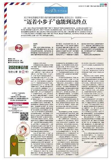初三学生因曾经不努力每天都在害怕和懊悔,该怎么办?专家说——— 这是一封初三学生在中考来临前既“懊悔”“害怕”又“想要改变”的挣扎时刻给我们的来信。这位考生直白地剖析了自己的矛盾:既想要集中注意力学习,却停不下好玩的心思;既想要努力追赶,又担心已为时已晚。华南师范大学心晴热线负责人袁杰在理解他此刻挣扎的心理后,建议考生不要把目光放在数月后的中考,把每一天都过得像“倒计时”;而是要定下并完成一个个小目标,每天积累小小的成就感,中考这个看似“艰巨”的任务,就会在不经意间完成。他开导考生不要自责,往日虽逝,但如今改变仍来得及,迈着“小步子”的人同样也能冲过终点。 来信 袁老师: 您好! 我是一名初三即将中考的学生。我现在每一天都在懊悔中度过,我认为我并没有把时间运用好。每天在学校,老师布置的复习任务我总是完成不了,总是拖欠着想等到放学后再完成,却发现到了家后一点也没有学习的心思。我明知中考是一个大关,却在学习桌旁边玩边焦虑,想要去集中注意力学习,却停不下好玩的心思。我很想去改变,却发现自己已经落下的太多了,我不敢想自己已经堕落成什么样子了。我很害怕我会考不上一个满意的高中,很害怕面对庞大的学习任务,也很怕时间来不及了。我每天晚上都在指责自己为什么不好好学习,越想越担心,起身想要抓起课本读两句,但已经困得睁不开眼。我不想再这样下去了,我想要改变,我想要追上别人。 我该怎么办呢,我还来得及吗? 回信 亲爱的初三同学,你好! 非常感谢你的信任,感谢你在中考前夕既“懊悔”“害怕”又“想要改变”的挣扎时刻给我写信。 我完全理解你此刻挣扎内耗的痛苦心理。我帮你画了一幅内心挣扎的心理画像:你一方面“明知中考是一个大关”,另一方面“却在学习桌旁边玩边焦虑”;一方面“想要去集中注意力学习”,另一方面“却停不下好玩的心思”;一方面“很想去改变”,另一方面“却发现自己已经落下的太多了”,“很害怕面对庞大的学习任务,也很怕时间来不及了”;一方面“每一天都在懊悔中度过”,“每天晚上都在指责自己为什么不好好学习,越想越担心”,另一方面“起身想要抓起课本读两句,但已经困得睁不开眼”。终于,你“不想再这样下去了”,你想要寻求改变。但是,在寻求改变时,你的内心继续在挣扎撕扯——因为你一方面“想要改变”,另一方面定的目标却是“想要追上别人”。 你或许听过著名心理学家弗洛伊德,他也能理解你此刻内心的挣扎撕扯。弗洛伊德著名的人格理论包含本我、自我和超我。本我遵循“快乐原则”,唯一的目标是追求即时满足,规避痛苦,遵循“趋乐避害”的本能逻辑,仅受本能驱动;比如,婴儿饿了会立即啼哭要吃奶,感到疼痛时也会本能地缩回肢体。自我是随着人们不断成长,从本我中分离出来的理性部分,遵循的是“现实原则”,会通过延迟满足、计划和决策去调控自己的行为。超我是道德化的自我,遵循的是“理想和道德原则”。自我负责平衡本我和超我之间的冲突,如果平衡不了,焦虑就出现了。从弗洛伊德的角度去看你,你的“超我”和“本我”的声音都很大,两方在硬碰硬地对抗,但是你的“自我”的声音却很弱小,无法很好地平衡本我和超我之间的对抗。 比如,你“明知中考是一个大关”,这是你的超我的想法,也是一种“理想和道德”的想法;同时你“却在学习桌旁边玩边焦虑”,这是你的本我在作祟,你觉得学习压力大学习比较痛苦,玩比较快乐,于是你遵循本我的快乐原则“趋乐避害”。当然,“边玩边焦虑”的时候,你的超我也出现了,超我站在理想和道德的制高点上“指责”自己不该玩,于是你感到很焦虑。 再比如,你“想要去集中注意力学习”,“很想去改变”,同时又“每一天都在懊悔中度过”,“每天晚上都在指责自己为什么不好好学习,越想越担心”,这些都是你的超我的声音,既比较理想化又充满了道德感。与之形成鲜明对比的是,你的本我也毫不示弱。你“停不下好玩的心思”,“发现自己已经落下的太多了”,“很害怕面对庞大的学习任务,也很怕时间来不及了”,“起身想要抓起课本读两句,但已经困得睁不开眼”,这些都是你“趋乐避害”的本我在说话。 你可能听过这样的说法,“思想上的巨人,行动上的矮子”。我做一点小小的改动,就比较适合你此时的状态,那就是“思想上的巨人,行动上的婴儿”。你的超我就像“思想上的巨人”,用理想化和道德化的声音,一边在强调中考的重要性一边在指责和懊悔。面对超我的指责和唱高调,你的本我就像“行动上的婴儿”一样哭得更大声了。面对婴儿的大声啼哭,巨人除了继续指责和唱高调,一点办法都没有。婴儿和巨人彼此对抗的声音都很大,但是几乎听不到你的自我的理性声音。 根据著名心理学家埃里克森的八阶段人格发展理论,上初三的你处于青少年阶段,该阶段的发展任务与危机是“自我同一性”对“同一性混乱”。自我同一性也称为自我认同感,你的自我以及自我同一性比较混乱弱小,也是这个年龄段的普遍情况。 现在你想要改变,你问道,“我该怎么办呢,我还来得及吗?”我的回答是,来得及。那该怎么办呢?从遵循自我的“现实原则”开始,或者说从“现实疗法”开始。 每个人都得承认的一个现实就是,我们只能活在今天,活在此