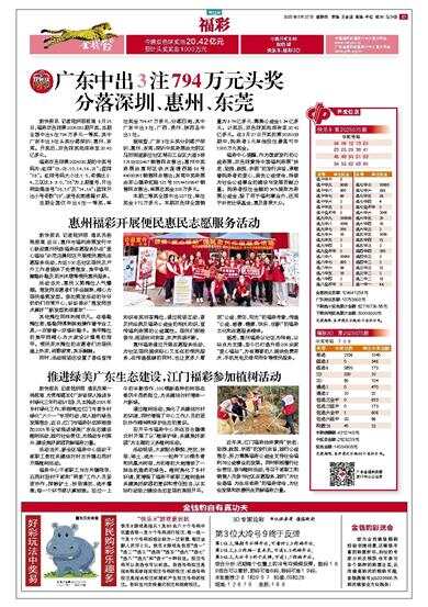 广东中出3注794万元头奖 分落深圳、惠州、东莞