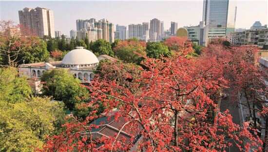 ■陵园西路的木棉花延绵数百米,因为与广州起义烈士陵园相邻,娇艳如血的花朵更让人与英雄的故事联系在一起,彰显了英雄花的内涵。 |