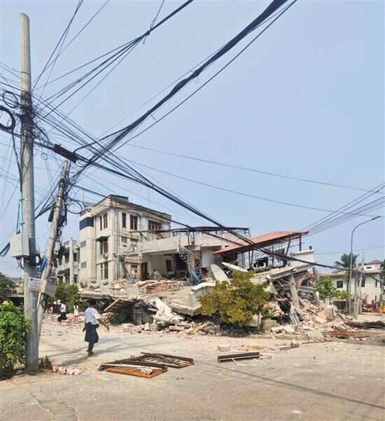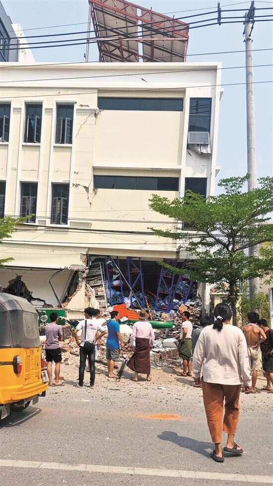 ■这是3月28日在缅甸曼德勒省拍摄的地震后受损的建筑。 |