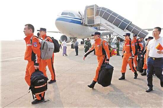 ■3月29日,中国救援队抵达缅甸仰光国际机场。 新华社发 |