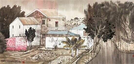 ■郭子良 《顺德乡村写生之一》中国画 2021 |