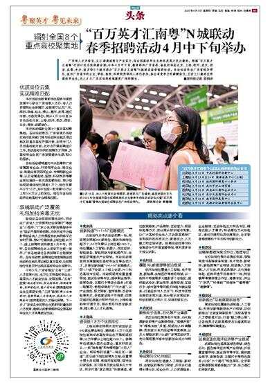“百万英才汇南粤”N城联动 春季招聘活动4月中下旬举办