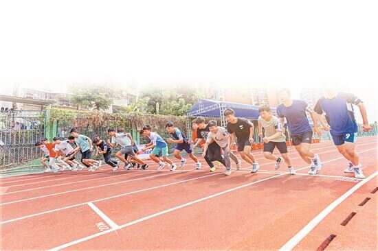 ■4月9日,今年广州市中考体育考试开考,共有13.9万名考生参加。在广州中学(五山校区)考点,考生进行1000米长跑项目考试。