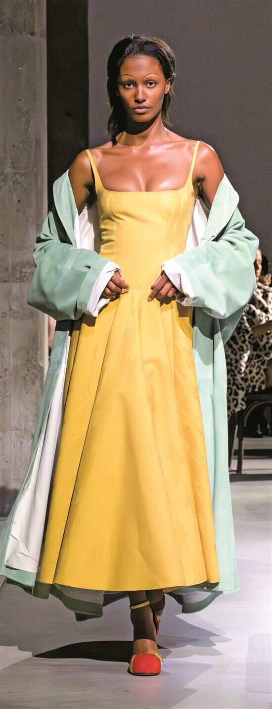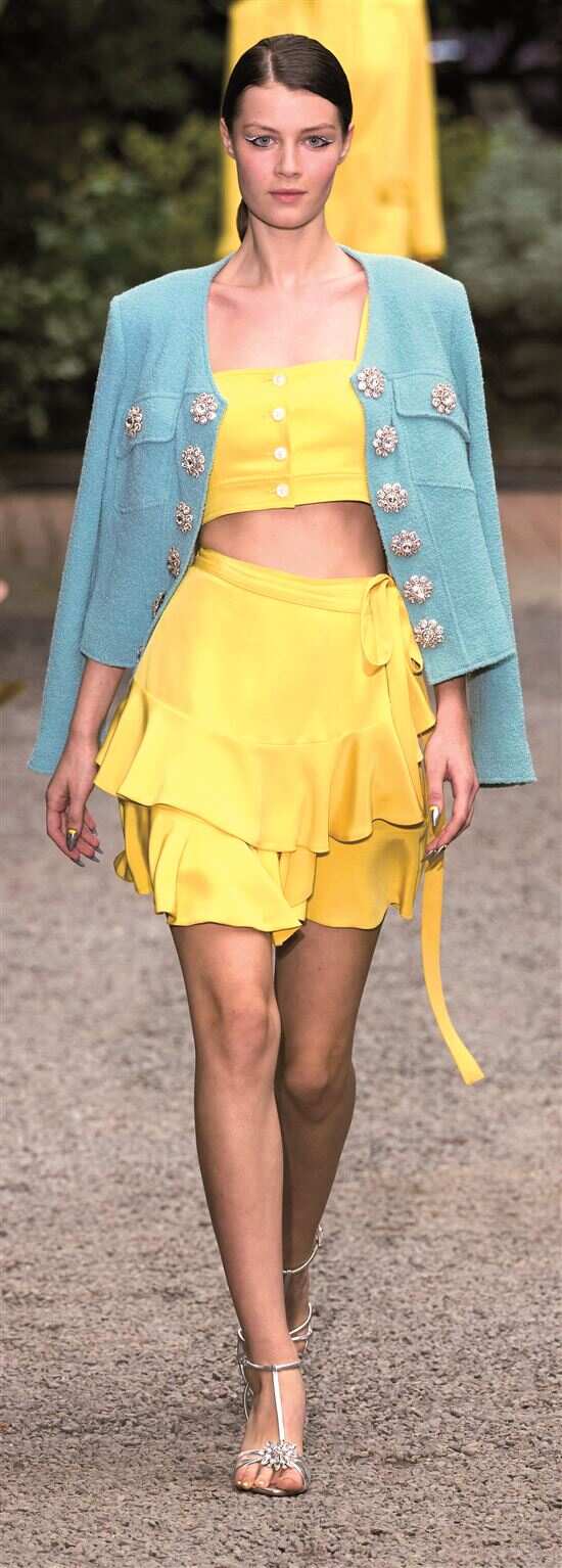 ▲PVC、欧根纱等透明材质独特的通透质感,赋予“阳光黄”穿搭神秘且迷人的气质。 |