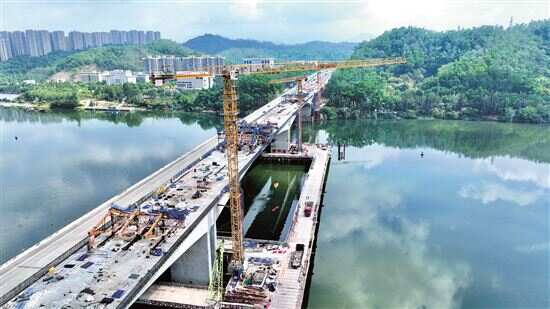 新快报讯 记者许力夫 通讯员沈高 谢文敏 余思昕报道 随着最后一方混凝土成功浇筑,长深高速河惠段改扩建项目东江特大桥近日顺利实现中跨合龙,空中俯瞰犹如一条巨龙横跨东江两岸,这一关键节点完成,为全线双向八车道通车奠定了坚实基础。 东江特大桥是长深高速河惠段改扩建项目控制性工程之一,全长约799.7米,主桥为连续刚构,采用单侧加宽的方式,通过挂篮悬浇施工方式,分18个节段逐步浇筑。 长深高速河惠段改扩建项目全长约116.6公里,起于河源市东源县,终于惠州市惠阳区,采用双向八车道高速公路标准改扩建,预计今年建成通车。
