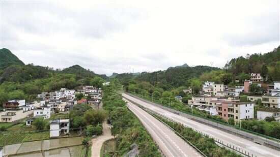 阳山县大崀镇道路两旁白墙黛瓦的农房错落有致。 |