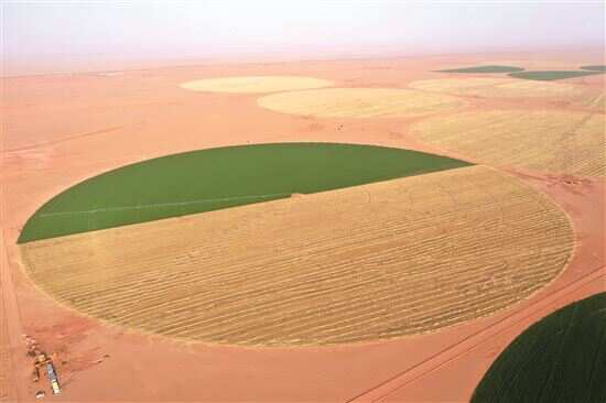 ■埃及南部荒漠的无垠的沙海中涌动着金色的麦浪。新华社发 |