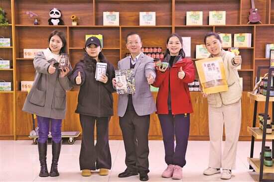 ■昭平工作组与消费助农体验馆工作人员展示农特产品。 |