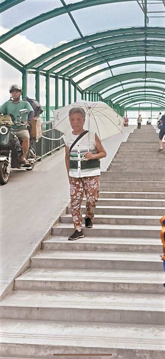 ■广雅路附近108级台阶的天桥,台阶没有扶手,老婆婆小心翼翼撑伞下桥。 |