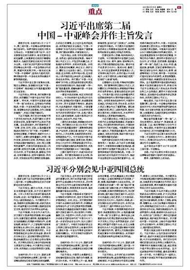 据新华社电 当地时间6月17日上午,国家主席习近平在阿斯塔纳出席第二届中国-中亚峰会期间会见吉尔吉斯斯坦总统扎帕罗夫。 习近平指出,建交33年来,中吉关系实现跨越式发展,处于历史最好时期。今年2月我们在北京举行富有成果的会晤,达成一系列重要共识,为两国合作注入新的强劲动力。中方愿同吉方一道,持续深化发展战略对接,在涉及彼此核心利益和重大关切问题上继续坚定相互支持,维护好双方共同和长远利益。 习近平强调,中吉合作大有可为。双方要扩大贸易和投资规模,深化金融合作;完善互联互通网络,高质量推进中吉乌铁路建设;拓展新兴领域合作,在清洁能源、绿色矿产、人工智能等方面培育新的增长点;深化文化、旅游、教育、卫生等领域交流,实施更多惠民项目。中吉两国都是经济全球化的受益者,要共同反对单边主义,坚定维护国际经贸秩序,推动构建更加公正合理的全球治理体系。双方将先后担任上海合作组织轮值主席国并主办峰会,中方愿同吉方相互支持,共同推动上合组织取得更大发展。 当地时间6月17日上午,国家主席习近平在阿斯塔纳出席第二届中国-中亚峰会期间会见塔吉克斯坦总统拉赫蒙。 习近平指出,去年我对塔吉克斯坦进行国事访问,我们共同宣布建立中塔新时代全面战略合作伙伴关系,并对两国全方位合作作出新的规划和部署,双方要抓紧落实,取得更多务实成果,高质量构建中塔命运共同体。 习近平强调,中国是塔吉克斯坦可以信赖的邻居和伙伴,坚定支持塔方维护国家独立、主权、安全。双方要发挥好中塔外长战略对话机制作用,协调推进各领域合作;扩大双边贸易和投资规模,加快推进交通基础设施项目建设,持续提升互联互通水平;充分发挥孔子学院、鲁班工坊、中医药中心作用,办好今年秋天在塔吉克斯坦举行的“中国文化日”;进一步密切执法安全合作,加大力度打击“三股势力”。中塔双方在维护多边主义和捍卫国际经贸秩序上有着共同利益,要在中国-中亚合作等多边机制中加强协调配合。中方支持塔方在国际气候治理中发挥重要作用。 当地时间6月17日上午,国家主席习近平在阿斯塔纳出席第二届中国-中亚峰会期间会见土库曼斯坦总统别尔德穆哈梅多夫。 习近平指出,中国同土库曼斯坦之间有着牢固政治互信、强烈合作意愿、良好互补优势。中方愿同土方一道,继续在相互尊重、合作共赢基础上充分释放合作潜力,全面拓展两国合作的深度、广度、规模,推动构建中土命运共同体。双方要落实好共建“一带一路”倡议同“复兴丝绸之路”战略对接,扩大两国天然气合作规模,拓展非资源领域合作,优化贸易结构,提升地区互联互通水平;在互办文化年基础上举办更多人文交流活动,加快互设文化中心,促进民心相通;进一步加强执法安全和防务合作,共同打击“三股势力”,提升网络安全合作水平。 习近平强调,中国将秉持睦邻安邻富邻、亲诚惠容理念方针,以高质量共建“一带一路”为主要平台,携手包括土库曼斯坦在内的周边国家共创美好未来。中方支持土方加入世界贸易组织、办好第五次阿富汗邻国外长会,乐见土库曼斯坦作为永久中立国在国际事务中发挥更大建设性作用。愿同土方加强在国际和地区事务中的协调和配合,共同维护多边贸易体制和全球南方共同利益。 当地时间6月17日上午,国家主席习近平在阿斯塔纳出席第二届中国-中亚峰会期间会见乌兹别克斯坦总统米尔济约耶夫。 习近平指出,去年我们在北京和阿斯塔纳两度会晤,就发展两国关系作出战略规划,中乌各领域合作呈现全面铺开、蒸蒸日上的良好局面。中方愿同乌方加强发展战略对接和治国理政经验交流,实施更多互利共赢的合作项目,助力各自国家发展,携手构建更加富有内涵和活力的中乌命运共同体。 习近平强调,中乌双方要出台更多贸易自由化便利化举措,扩大双边贸易和投资规模,高质量建设中吉乌铁路,打造立体化联通格局,拓展人工智能、新能源、智慧农业、公共卫生等新兴领域务实合作;积极推进互设文化中心,办好第二届百校合作论坛,持续加强减贫合作,促进两国民心相通;继续深化执法安全合作,共同打击“三股势力”,携手应对新威胁新挑战,维护地区和平稳定。双方要在中国-中亚机制、上海合作组织等多边平台加强协作,共同捍卫国际公平正义,维护国际经贸秩序。 两国元首就当前中东局势交换意见。习近平表示,以色列发动对伊朗军事行动,造成中东地区紧张局势骤然加剧,中方对此深感担忧。我们反对任何侵犯别国主权安全和领土完整的行为。军事冲突不是解决问题之道,地区局势升温不符合国际社会共同利益。各方应该推动冲突尽快降温,避免紧张事态进一步升级。中方愿同各方一道努力,为恢复中东地区和平稳定发挥建设性作用。