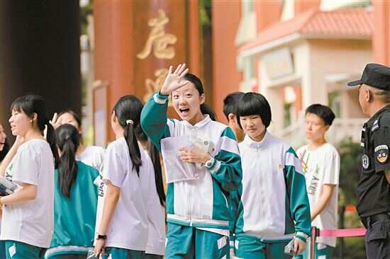 ■6月30日广州中考首日,在广东实验中学(越秀校区)考点,学生们自信地步入考场。 |