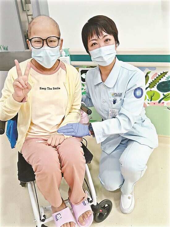 ■妍妍在广州治疗期间经常得到医护人员鼓励。 |