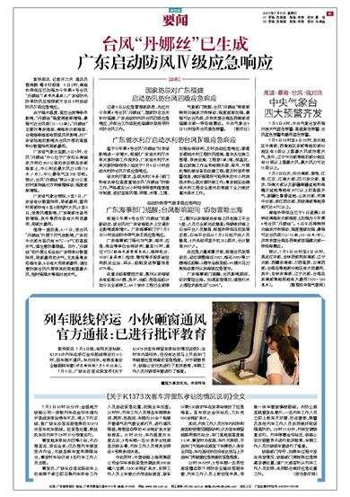 新快报讯 7月2日晚,有网友发帖称,K1373次列车在浙江金华脱线停运约3小时,因车厢不通风,车内闷热,有乘客拿安全锤砸碎车窗(详见新快报7月5日03版)。 7月5日,广铁长沙客运段发布《