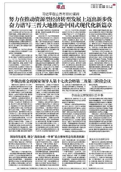 习近平在山西考察时强调 努力在推动资源型经济转型发展上迈出新步伐 奋力谱写三晋大地推进中国式现代化新篇章