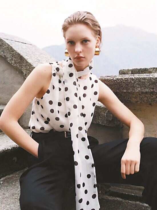 ▲不敢尝试大面积波点可先从小配饰下手,波点丝巾、波点领带都能增加风格感。 |