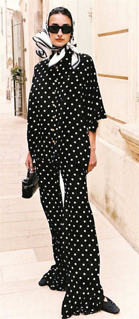 “时尚圈最不服老的鼻祖级元素”回来了,全名“波尔卡圆点”,更多人会喊它“波点”,这一源于舞蹈的经典时尚元素,踩着跨时代的舞步,重回复古回潮的当下,以经典之姿融合现代廓形再度席卷秀场与街头。 2025春夏系列秀场,波点又被大量应用,除了回归代表优雅的精致小圆点、在现代廓形下激发出更浓的复古意味之外,还有打破波点“规整重复”基因、将经典波点拆解重组的先锋设计,依托材料革新打造立体感波点和错位感波点也是令人耳目一新的设计,给经典注入摩登,为造型增加张力优雅。 ■新快报记者 梁彧/文(资料图片) Focus A 精致小圆点 凸显知性气质 比起格纹和条纹,波点更俏皮浪漫,搭配性很强。本季流行的是直径3到5毫米的精致小圆点,相较夸张的大波点更显内敛知性。 一颗颗波点如“大珠小珠落玉盘”一般散落衣摆与袖口间,要注意波点不宜太密,容易密集恐惧,且大面积波点在视觉上会有膨胀感和拥挤感,因而当波点出现在上衣时,记得选大领口、露肤度高的款式。 黑白波点是最经典的百搭,其余的如复古气质浓郁的白棕、汲满法式浪漫的白红、俏皮可爱的白黄,今年春夏很流行的“帕斯蒂尔风”色系即柔和、低饱和度的色彩搭配,和波点结合在一起更显温柔高级,可根据自己想要凸显的气质进行穿搭选择。 Focus B 流行面料 点亮波点新意 当季流行的面料赋予经典元素全新面貌,今年首当其冲当属薄纱面料,在波点与薄纱的虚实交错中透露出“亿点点”小心机,既带点“风吹过肌肤时波点晃动的撩人”,又带点朦胧感制造“脑补式诱惑”。与此同时还让珠绣、勾针织法、压纹皮革、水钻、铆钉等立体感波点得到更好呈现。 想要彰显优雅成熟气质,可选真丝面料的波点裙,轻柔垂坠感与圆点形成天然呼应,步履间仿佛也被柔化。 此外波点的优势还在于其多功能性,无论经典黑白波点裙还是用于衬衫、裤子、T恤及头巾、手套等配饰上或更为夸张的款式,都散发出灵动俏皮。波西米亚风的回归也让波点与流苏这两种经典元素有了跨时代的结合,波点如被风吹散的墨滴,在充满动感的流苏间若隐若现……
