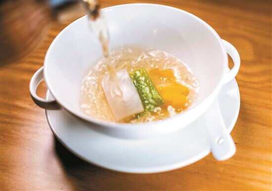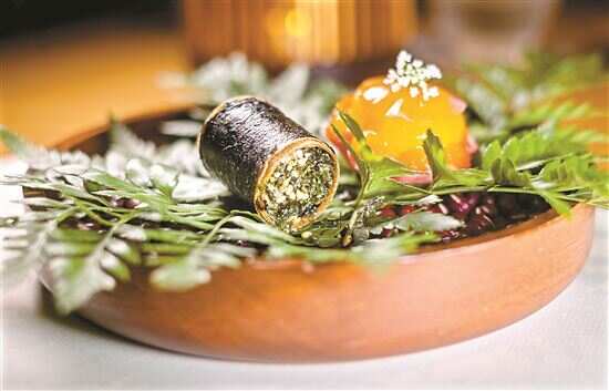 近年来,随着人们对健康养生、绿色有机、药食同源等方面的追求,部分消费群体日渐呈现清新食风。 我们从刚刚发布的广州米其林榜单“入选餐厅”中遴选两家素食餐厅:其中一家在广州深耕16年,已连续5年进入米其林“入选餐厅”榜单;另一家则是新张刚满一年,尽管对不少广州食客来说属于新“面孔”,但这两家素食餐厅的共同点在于:都讲究广纳时令鲜蔬食材,都将传统中国文化元素与素食相结合,都崇尚可持续发展的经营理念,都在空间里追求原生态自然风的格调…… ■新快报记者 陈斌/文 观显锋 郭思杰/图 01 姜花入汤,菱角当造 留住夏天美好的记忆 天水蔬食料理已在广州经营了16年,坚持每个月更新一次菜单,遵循“不时不食”的食养准则选用时令食材,“我们每个月会更新一套餐单,从2024年10月份开始每次会选取中国一个地域设计主题,结合当季与当地的食材及当地的饮食文化,经研发团队组合重构,给食客提供一套完整的用餐体验。”运营总监胡晓虹介绍。 进入天水,首先映入眼帘的是一处比较开阔的空间,天花上对称悬吊的原木相当吸睛,自然扭曲的线条让人联想到水波纹,暗合了店名“天上之水源源不断”的含义。餐厅面积不算大,约合60个餐位,大部分是雅座的形式,座与座之间以竹帘相隔,很是雅致。 7月餐单主题是“港味烟火”,顾名思义灵感来源于香港,“融合了香港本土以及东南亚等地的不同口味设计的菜单。”店长一边拿菜单给食客一边说。每一套餐单,从欢迎茶到开胃前菜、养生炖汤、主打菜品再到主食、甜品以及间中穿插着的配饮果茶或原茶等,都是根据季节时令选材,“每一套餐单包含的各种食材原材料可能有200种上下。” 例如7月餐单上的那一道汤,用到一味只有夏季才有、岭南人也非常熟悉的花材:姜花,那沁人心脾的花香被热汤一激,更显浓郁。汤底用荔枝菌、猴头菇、金耳等一同慢炖两小时,荔枝菌也是当天凌晨采摘当天烹制,店长说:“姜花用的是从化合作农场的水培姜花,它的花语是‘留住夏天美好的记忆’,寓意也很好。” 每年7月到9月,正是菱角当造的时节,天水的菱角菜式以南瓜、胡萝卜做成素金沙,采用香港避风塘做法烹制,为了增加口感风味,菱角会用新鲜藤椒水浸泡一个晚上,再佐以藤椒打成的“泡沫”及烟熏青椒酱,搭配玫瑰醋腌制的白象牙莲藕,冷暖色调的对比反衬意味十足。 餐前小吃生菜打抛脆米,借鉴“生菜包”取“生财”之意,主要食材是老豆腐加舞茸菌,用泰式打抛技法爆炒,一口下去,香浓酥脆,清甜爽口,酥脆来自搭配的黑米,清甜来自包裹的罗马生菜…… 02 山药变身“酸菜鱼” 味道为先药食同源 刚刚一周年庆的谷缘,坚持“味道为先”,“好吃,是第一位的。”主理人李兆玉介绍。 “味道为先”的同时,他们遵循中国传统二十四节气的“不时不食”准则,讲究“四季有序,万物有时”。“我们餐桌上所有叶子类菜蔬基本都产自我们自己在从化的农场,包括茄子、部分水果等。”除了自家农场出产的新鲜有机蔬果,他们也同样会在全国大范围内遴选当季优质食材,同时在每一季的菜品设计上注重色泽搭配,“希望能让食客直观感受到‘置身山野’一般的用餐体验。” “置身山野”这一点还体现在餐厅的空间设计布局上,一进门便有种“曲径通幽”的设计感,全实木的装潢表达着“自然”“有温度”以及“可持续”的相应理念,甚至空间内使用的香薰、洗手液等也都选择木质香调的,以匹配“自然”的概念。 通常他们会提前两个月左右设计新菜单,开业短短一年时间,“菜单已经更新到第10版了。”主厨谭红波说,以这两个月的餐单为例,岭南处于夏季,清新润肺降燥便是饮食养生的题中应有之意,由13道菜品组成的当季套餐有如夏日小夜曲,舒缓而带有起伏,看似极简但同时既有滋味又有型格。 比方说一道前菜,其实是搭配了两款菜品,色彩鲜艳的是由云南的树番茄、藏红花、香橼、紫番茄搭配宁夏鲜枸杞以及罗汉果;颜色素黑的则是海苔杂粮饼,其中还用到了山西土豆和腌过的木瓜,两者一个酸酸甜甜口感清新,一个则焦香酥脆带着微辛,一下子打开了食客味蕾。 而一道椰肉与凉瓜、金耳搭配的“清汤”和那藏在南瓜叶下的节瓜花与水果西芹,又无不在凸显一个“清”字,前者清润,后者清香,从视觉到味觉都让人清清爽爽,吃得毫无负担。 每一季菜单都会保留一道“烩”菜,这一季的“冰合烩灵”使用的食材是有健脾功效的铁棍山药,但它来到你面前时完全看不出其本色,反倒像是一碗散发着诱人香气的“酸菜鱼”,主厨谭红波揭开“谜底”,原来是将铁棍山药打碎再重组而来。 经营一家素食餐厅,用主理人李兆玉的话说,最初的理念是“导人向善”,但经过一年来的沉淀,一定程度上也跳脱出“传统”,用更多创意表现传统的中式元素,将药食同源的生活方式灌输给年轻食客们。“我们会根据不同的时令节气,设计一些活动让食客参与,像端午,我们选配了40多种利于安神养气的中药材原材料,让食客自己动手制成端午香包,既有意思,又有意义。”