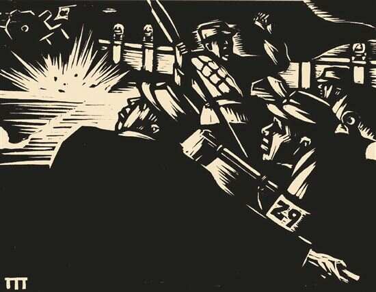■赖少其《国民一致起来抗战》 黑白木刻 1936年 湖北美术馆 |